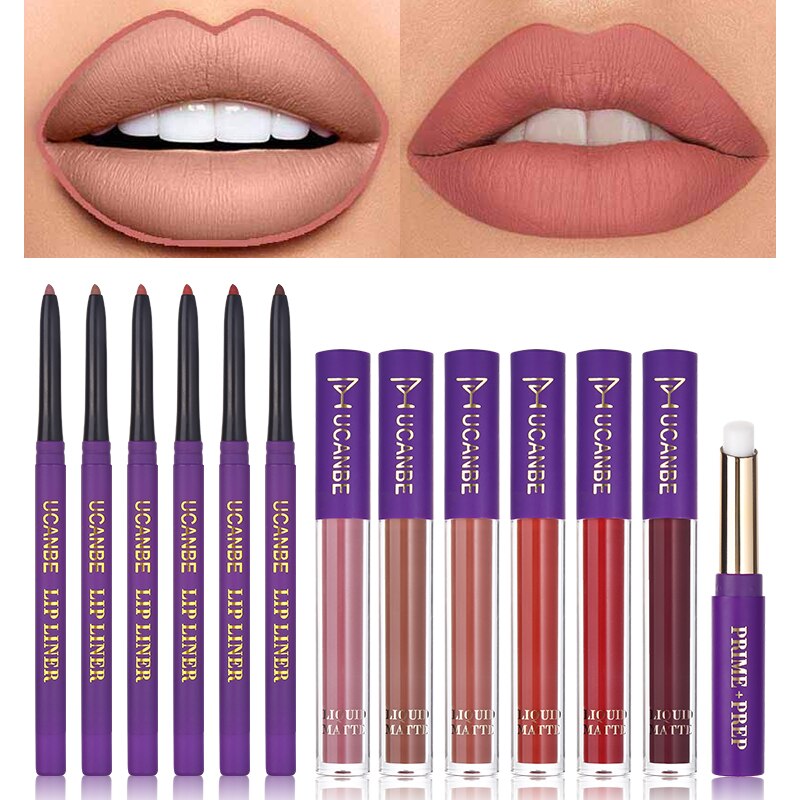 Kit contém 06 Batons Líquido, 06 Lápis DELINEADORES E 01 Primer